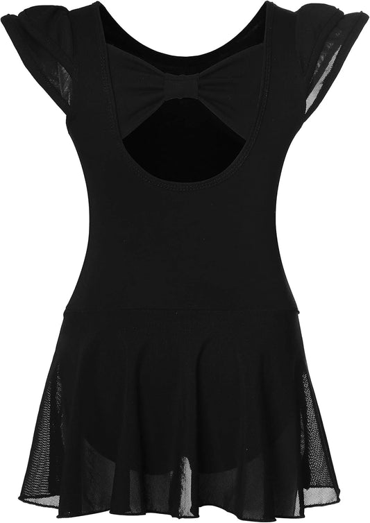 Girls’ Ballet Dance Leotards with Flutter Sleeve Petal Skirt and Bowknot Back